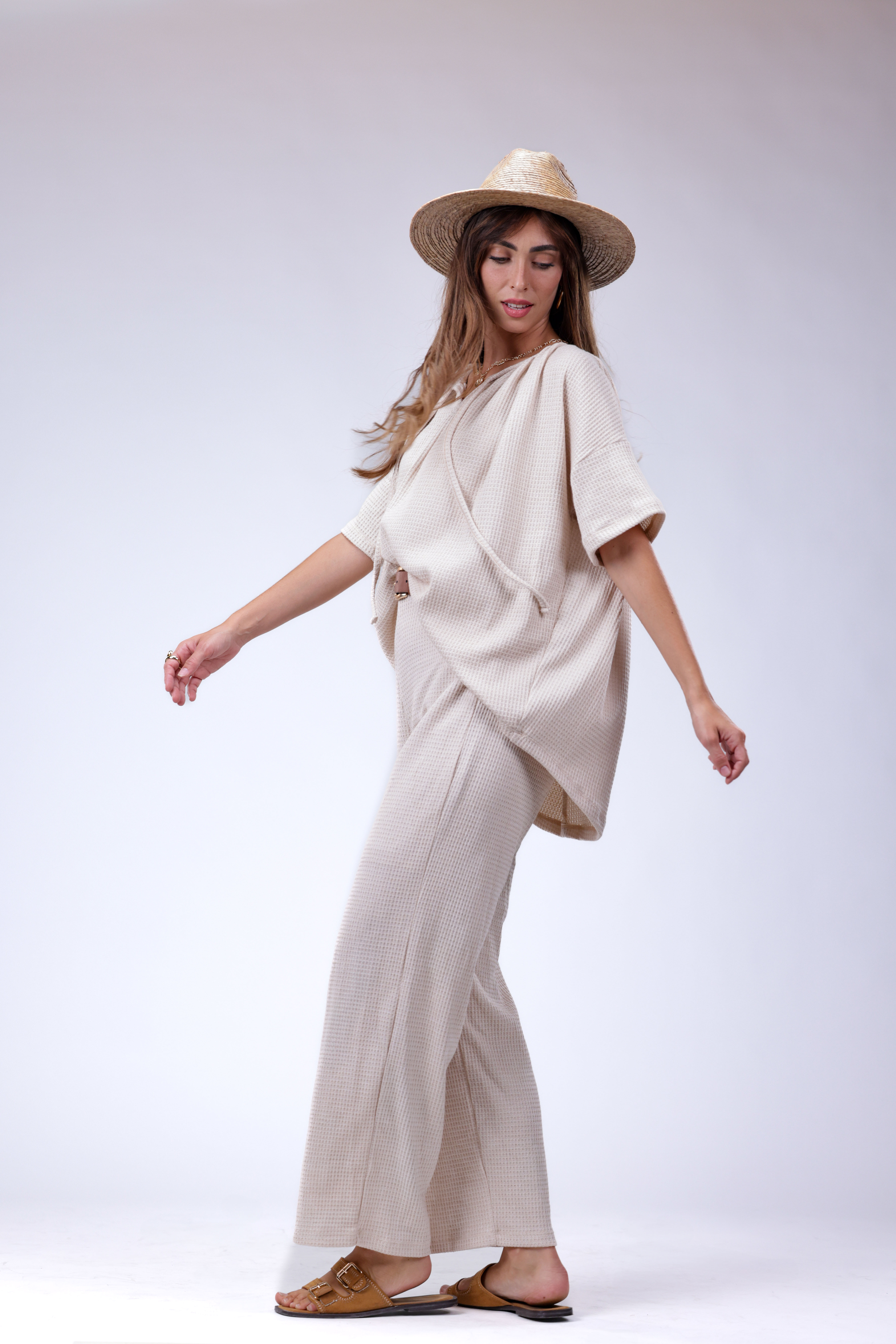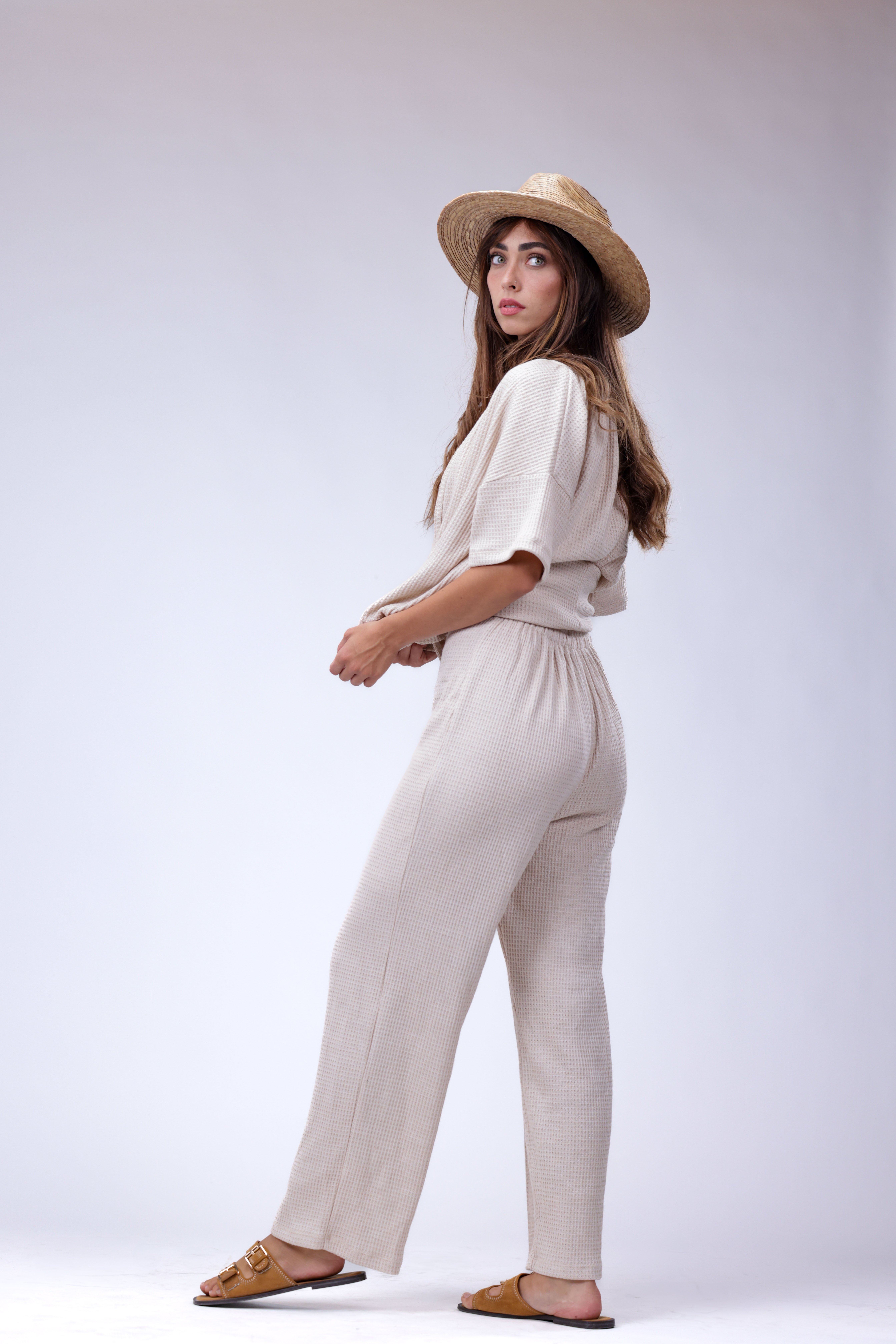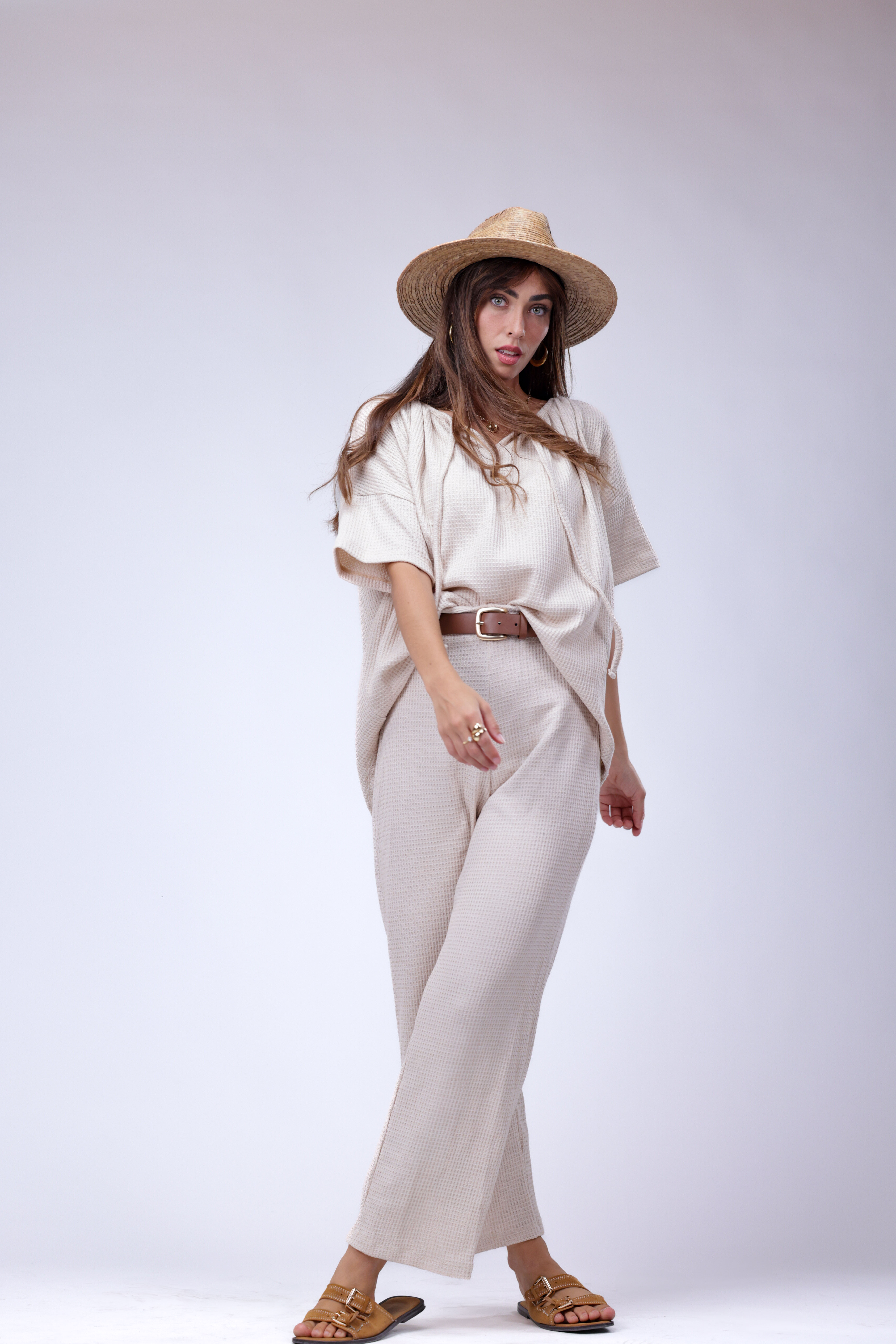 הרכב בד: סריג כותנה בשילוב לייקרה. (טקסטורת וופל)
