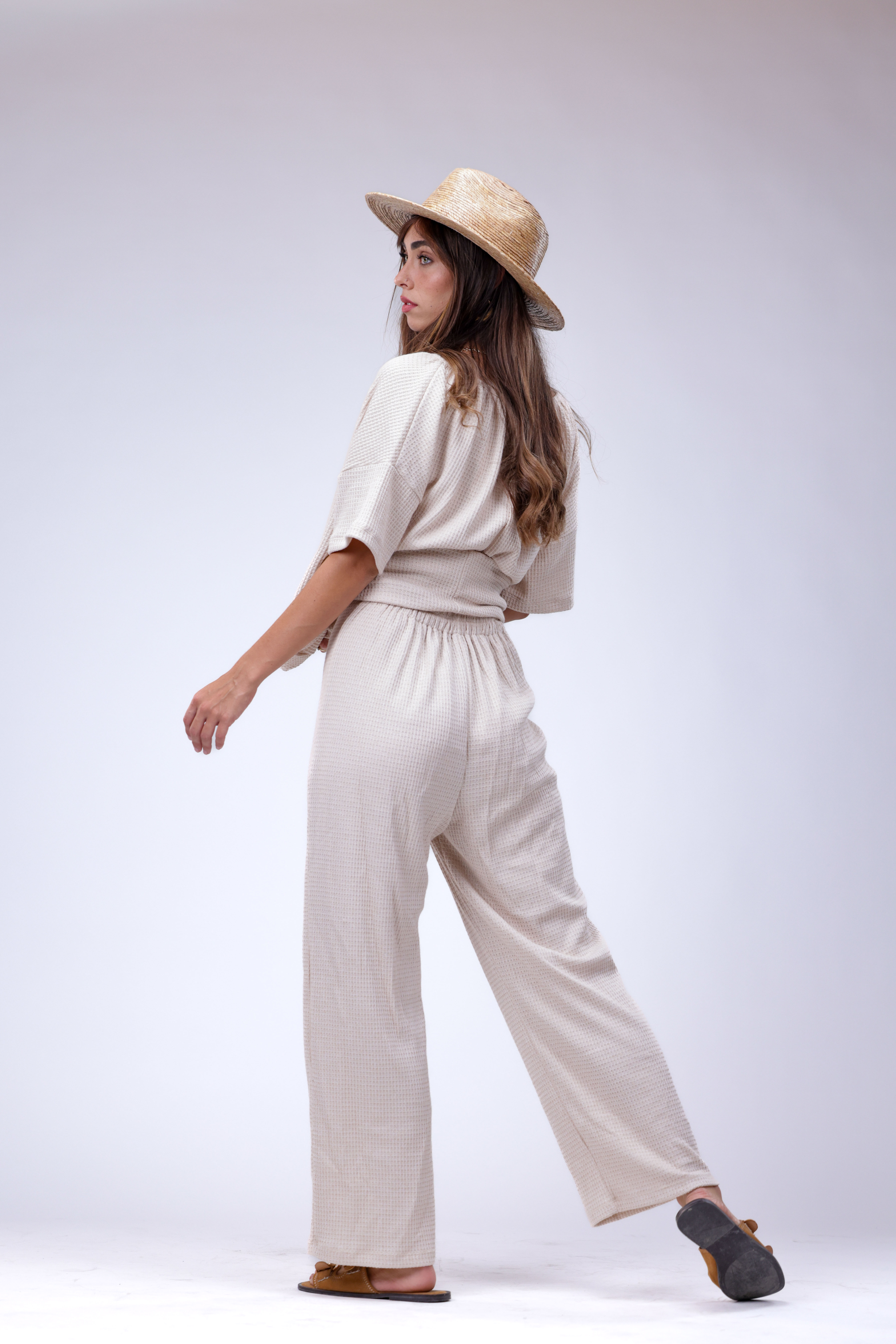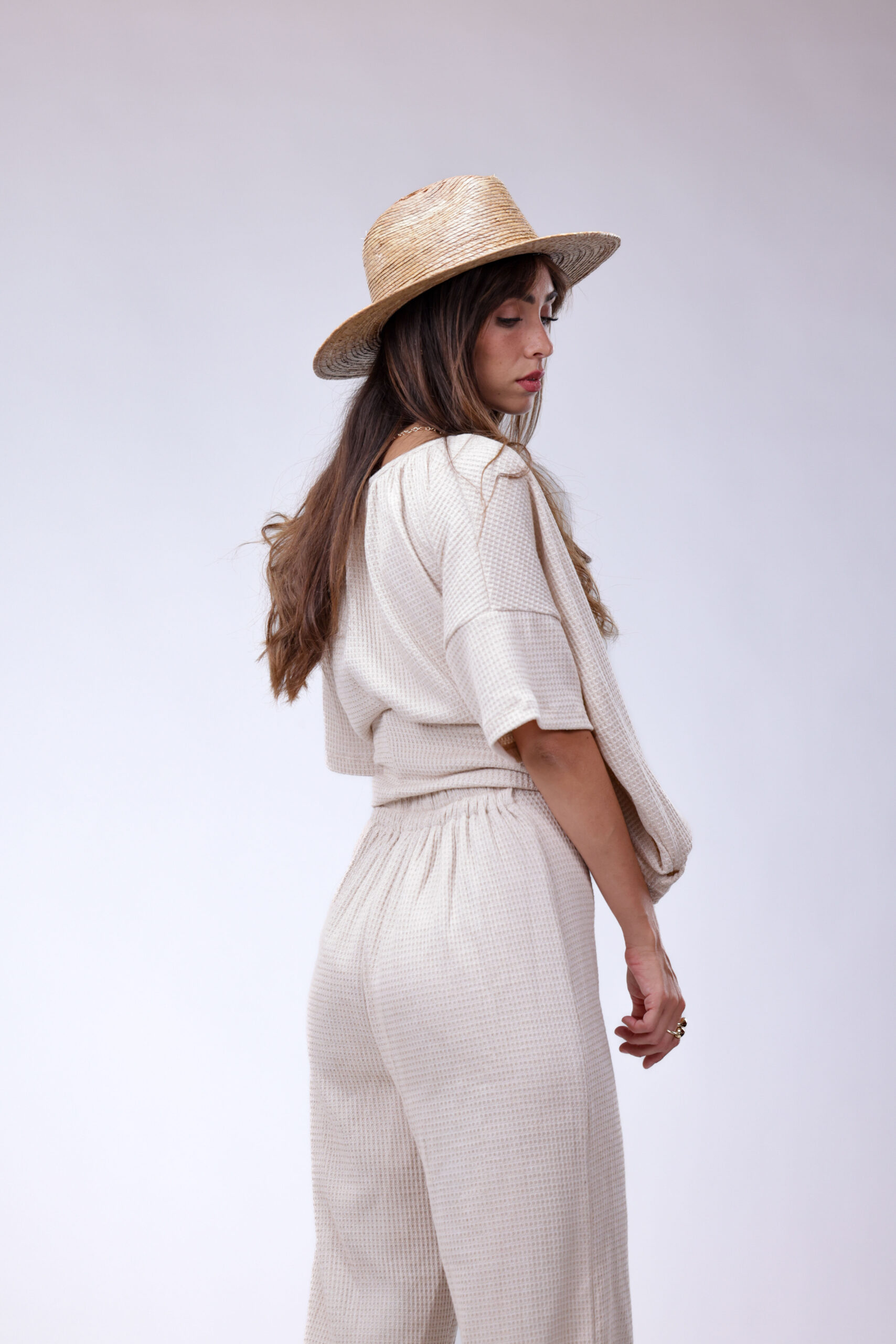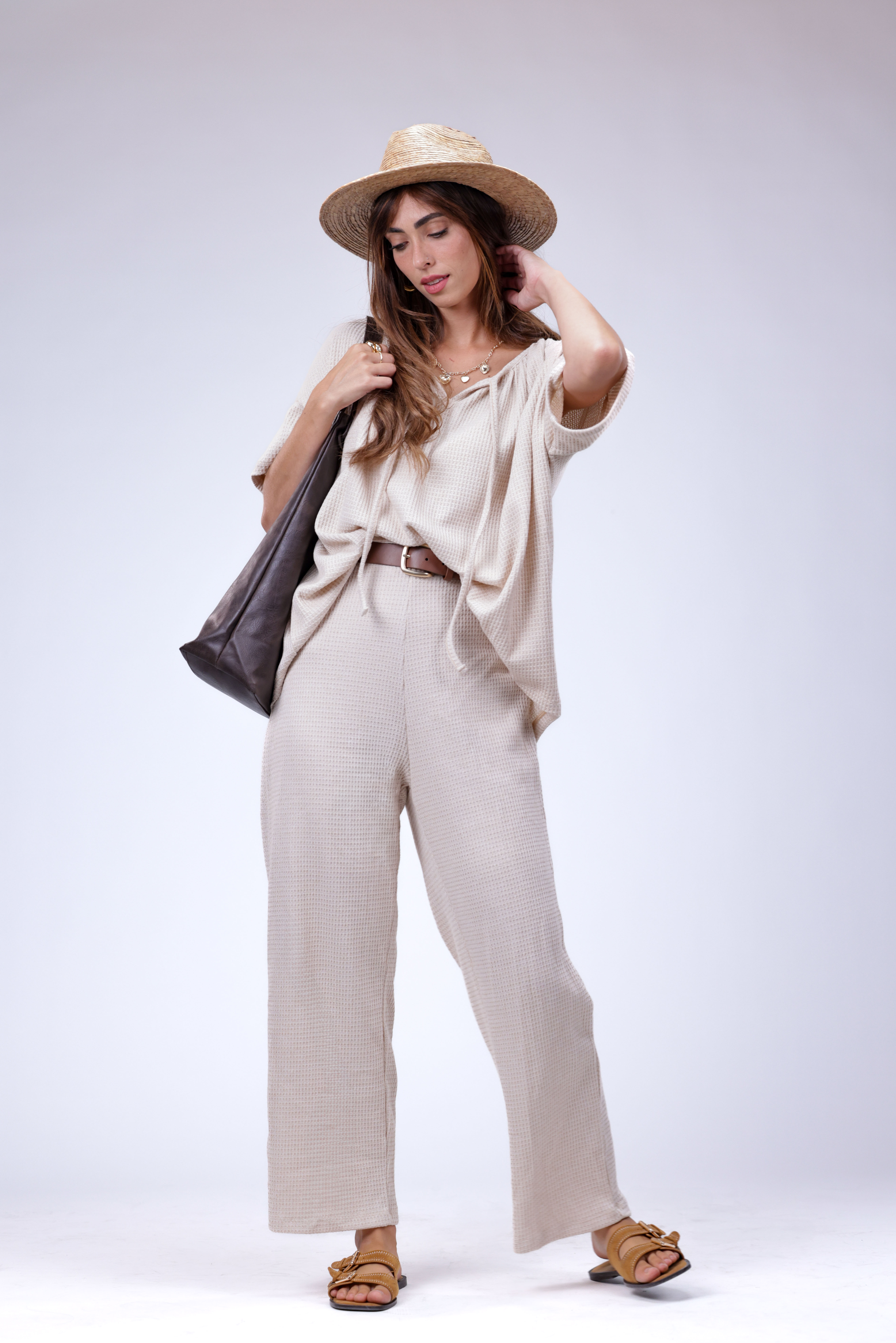 הרכב בד: סריג כותנה בשילוב לייקרה. (טקסטורת וופל)